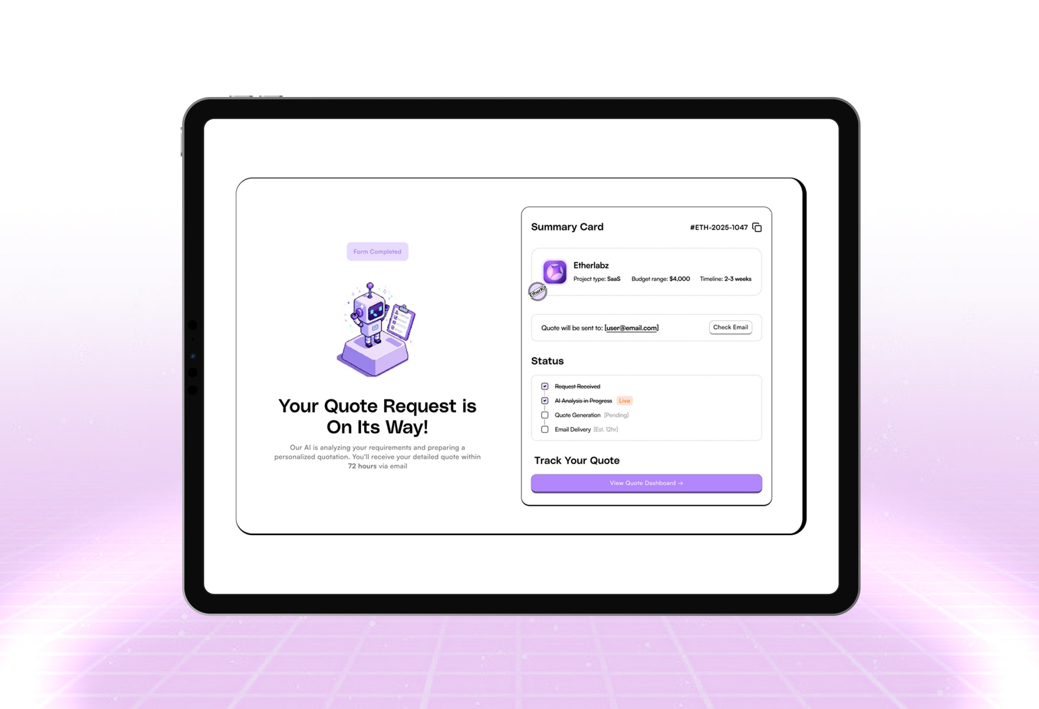 Delivered free, immediate quotations and created a dedicated submission confirmation page offering reassurance, next steps, and a sense that every request truly matters.