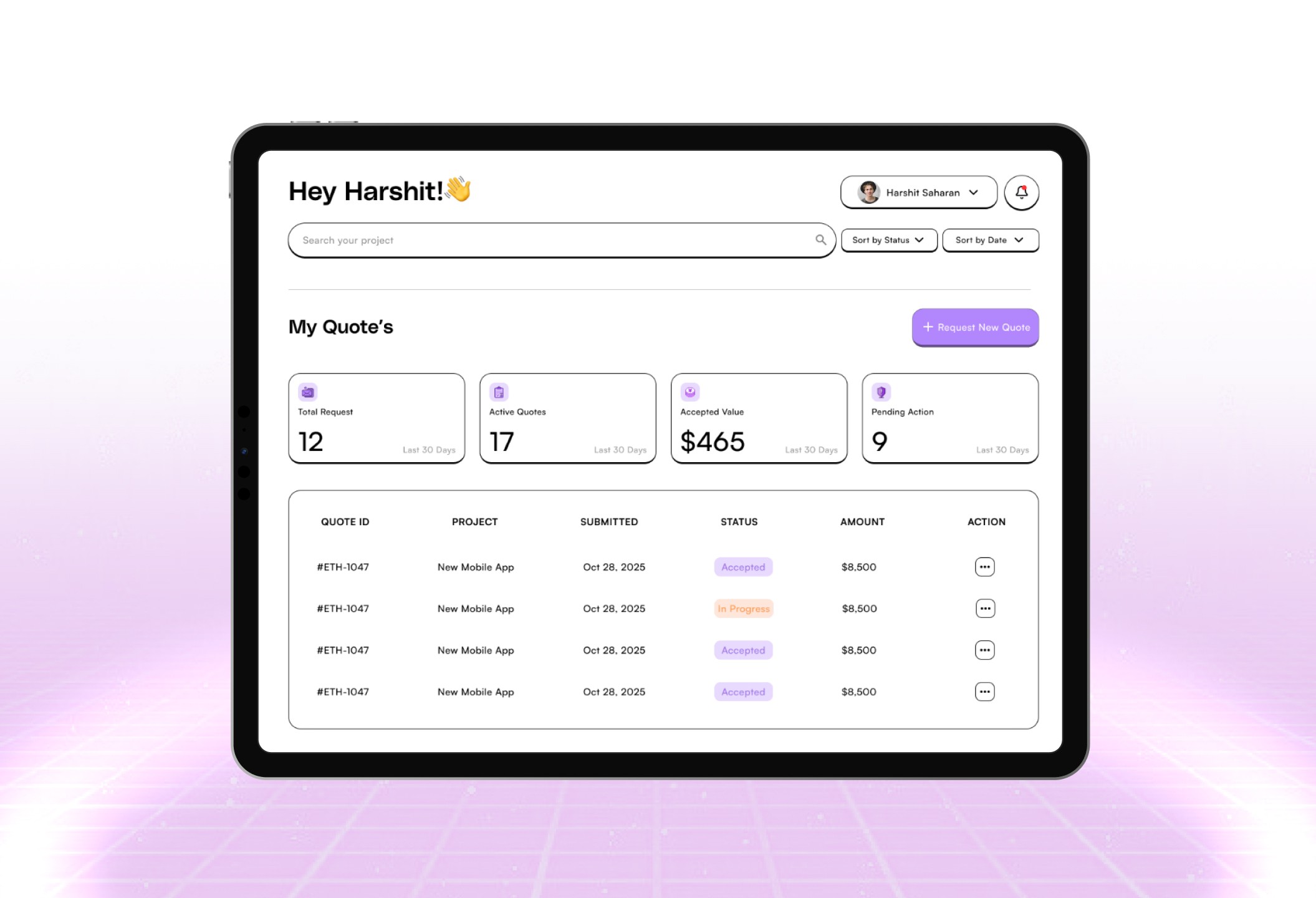 A dedicated dashboard now shows all requests, active quotes, and statuses in one clear view.